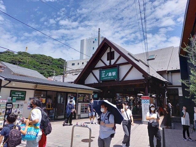 電車で江の島駅までやってきました✨