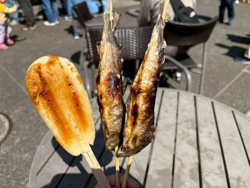 ゴールデンウィークでシーズンだったこともあり出店がたくさんあったので焼きたてのイワナをぺろりと・・・