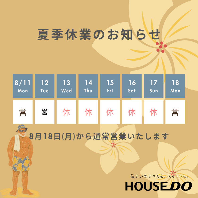 弊社ハウスドゥ新旭川店の夏季休業日はこちらになります。